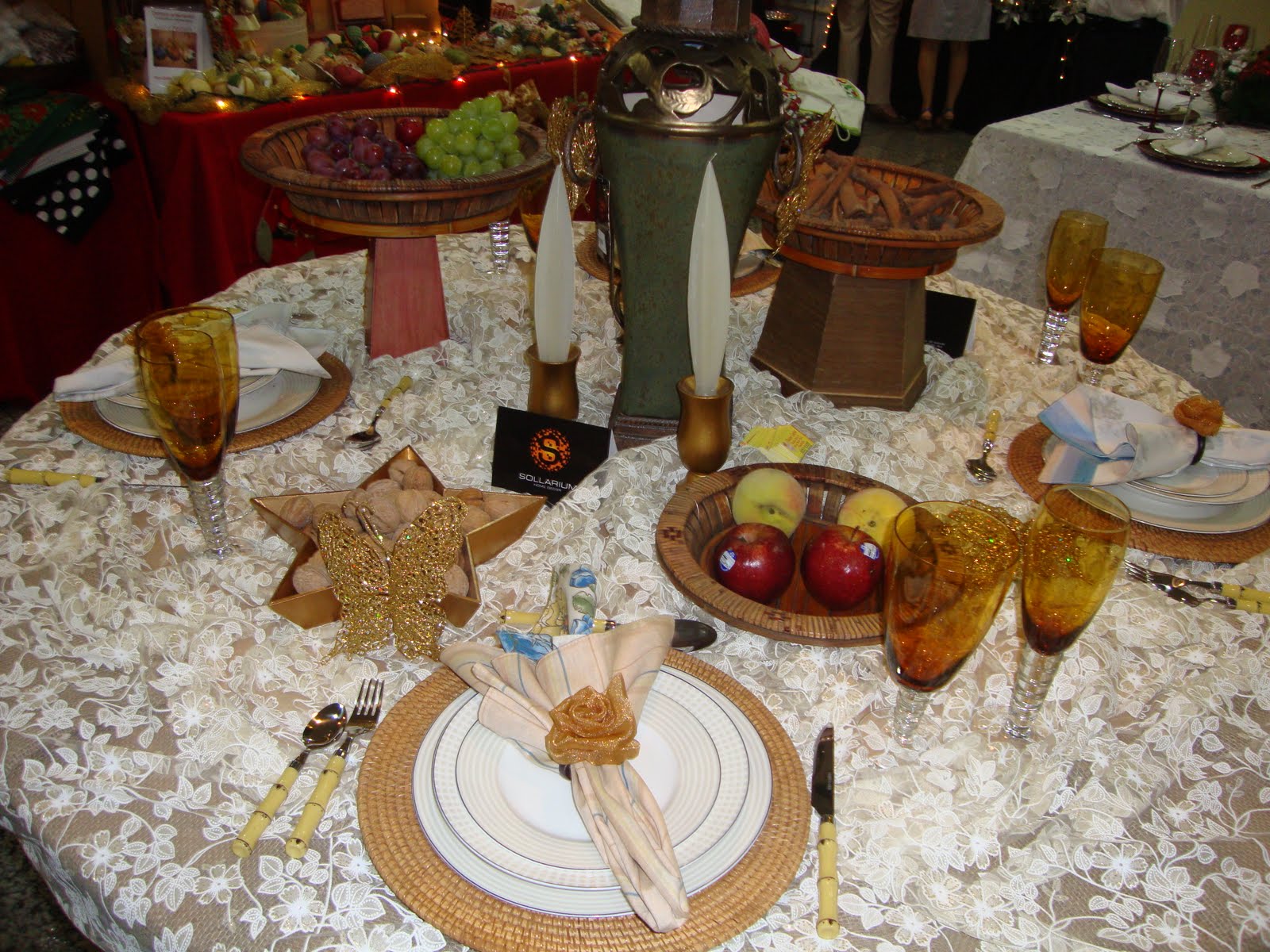 Esta mesa foi criada pra decorar a feira. Em parceria com meu amigo Cirino da Sollariun, em São Mateus. Ele cedeu todos os utencilios e eu decorei, com um ar mais rústico e ao mesmo tempo moderno, esta é a mesa que usarei em minha ceia este ano.